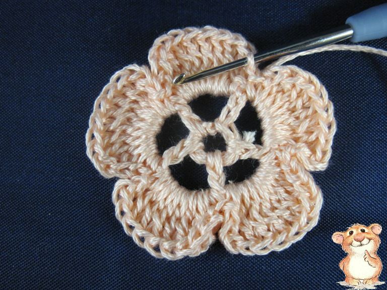 Следуя малой схеме, свяжем цветочек с 6 лепестками