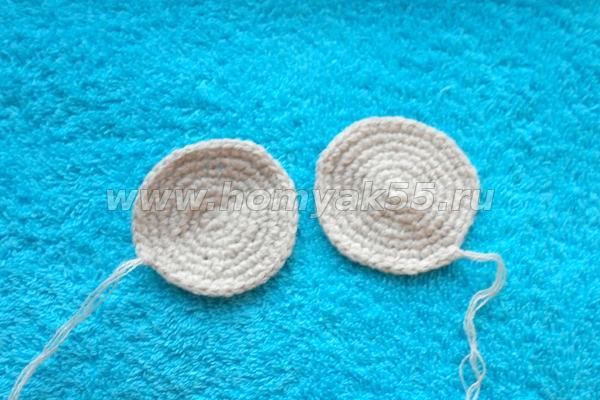 Для ушей вяжем 2 «таблетки» по 5 сантиметров.