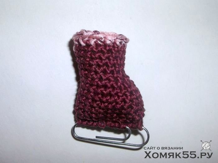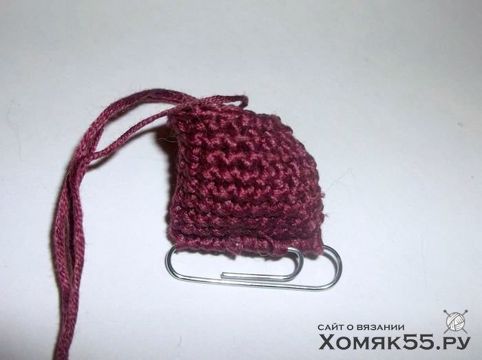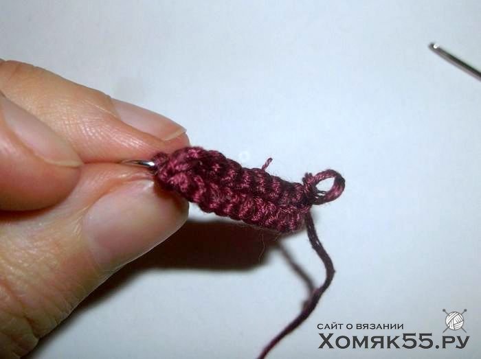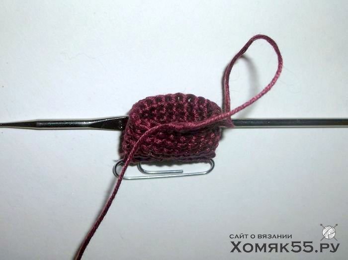 Провязываем еще один круговой ряд. Но его и все последующие вяжем уже на за полупетлю, а за полную петельку.