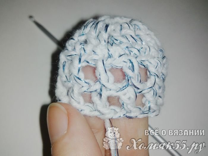 Во вторую и все последующие петли будем вязать по два столбика с одним накидом. А между петлями основания будем делать по одной воздушной.