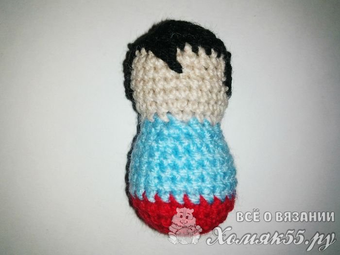 Бэтмен готов, перейдем к вязанию Супермена. Вяжется он точно так же, как и предыдущий супергерой. Но чуть отличается в вязании головы. И по цветам.