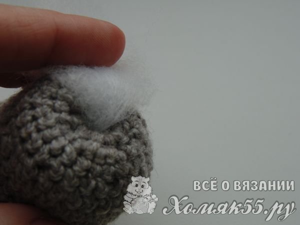 Хвост образуется из простого набора воздушных петель. Его размер зависит от желания материцы. Элементы, которые должны быть объемными, набиваются синтепоном. Можно взять любой подходящий предмет (например старый стержень от ручки или сам крючок).