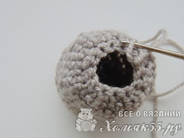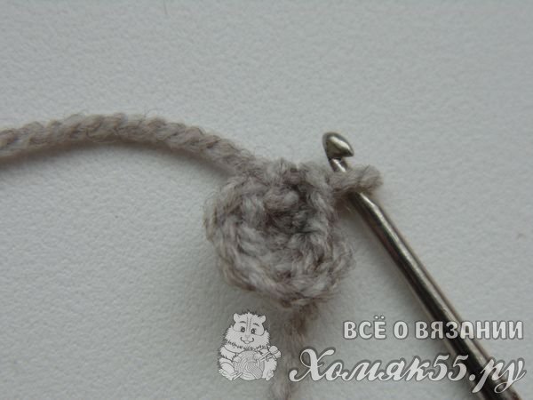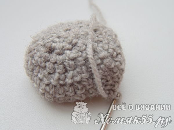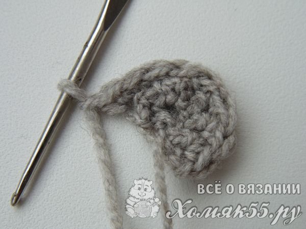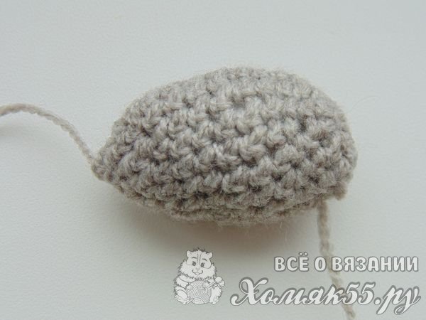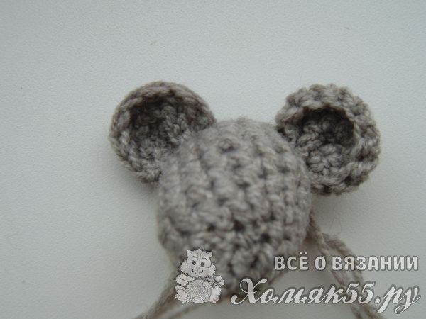 Голова мышки вяжется практически таким же способом. Отличие заключается в количестве увеличиваемых петель.