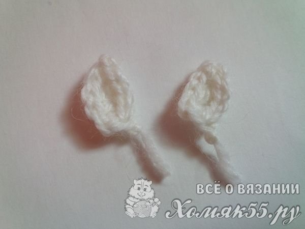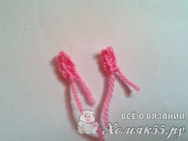 Свяжем ушки. Они тоже будут двух цветов: розовым и белым.