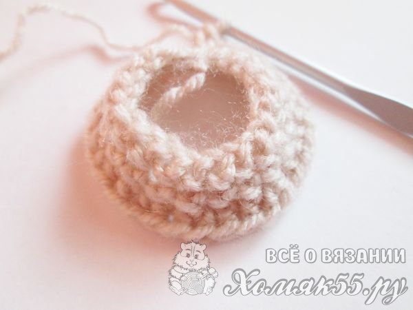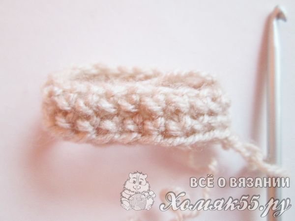 Теперь нам нужно провязать два ряда обычными столбиками без накида. И весь пончик мы будем вязать ими.
