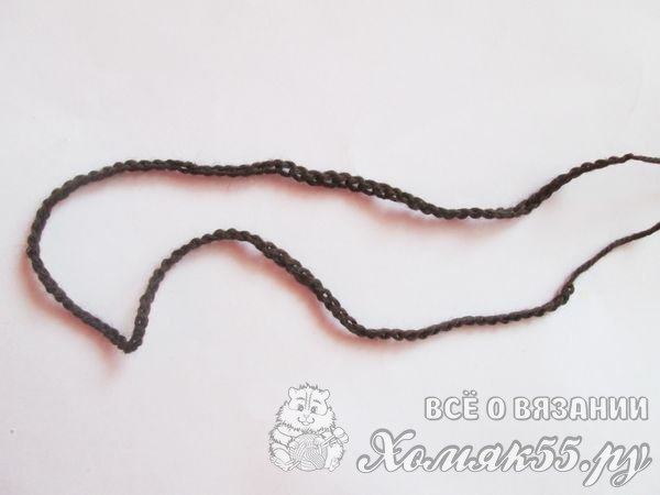 Мы вяжем цепочку коричневой пряжей, которая будет состоять из девяноста петель.