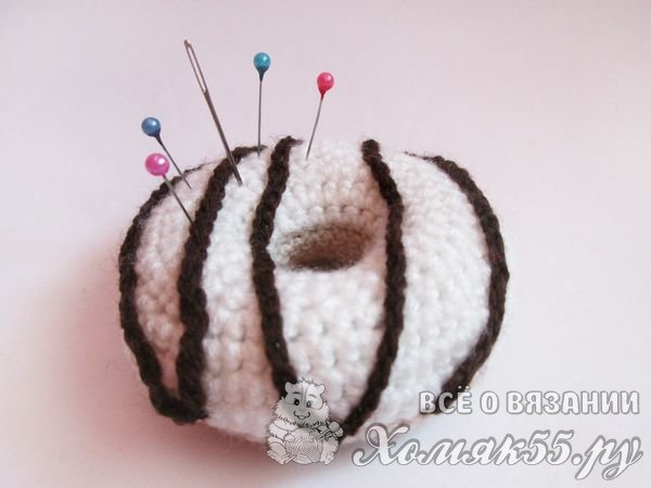 Такие пончики можно использовать не только в качестве игры, но и как игольницу. Это очень необычное решение. К тому же иголки всегда будут на своем месте.