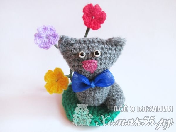 Совсем скоро лето. И уже сейчас начинают цвести цветы, а поляны уже давно стоят зеленые. А в этом МК мы свяжем цветочную полянку крючком. А еще на ней будет сидеть маленький серый котенок.