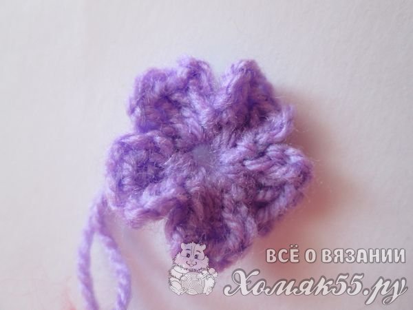 И мастерим цветочки. В скользящую петельку будем вывязывать три ВП, три ССН и три ВП. Также вяжем один СбН.