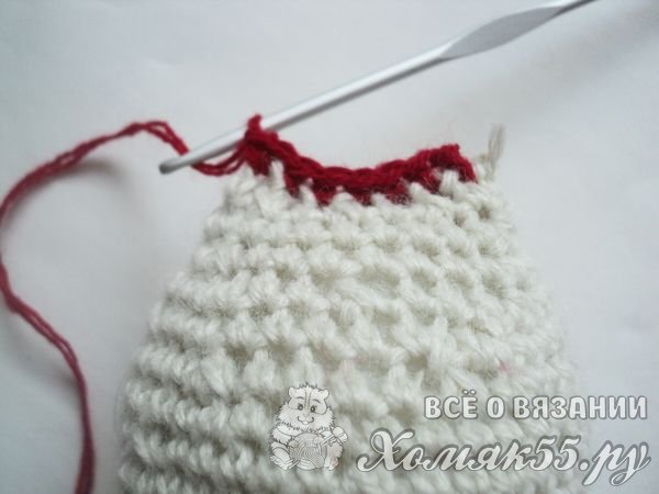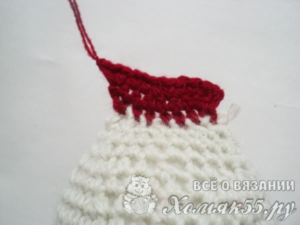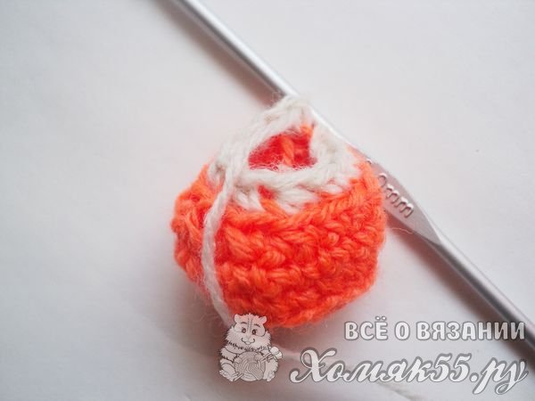 Менять цвет нить на цвет тела. Вяжем 2 ряда без изменений.