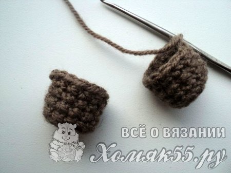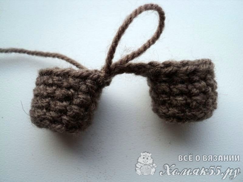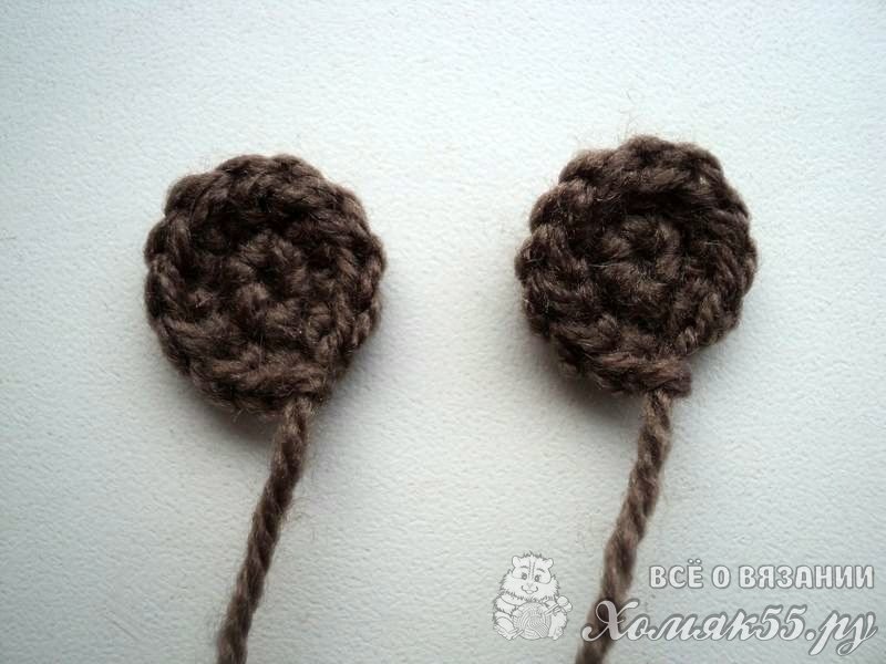 Тут все просто. Делаем две петли и во вторую вяжем первый ряд из шести СБН. Во втором ряду вяжем по два СБН в петли.