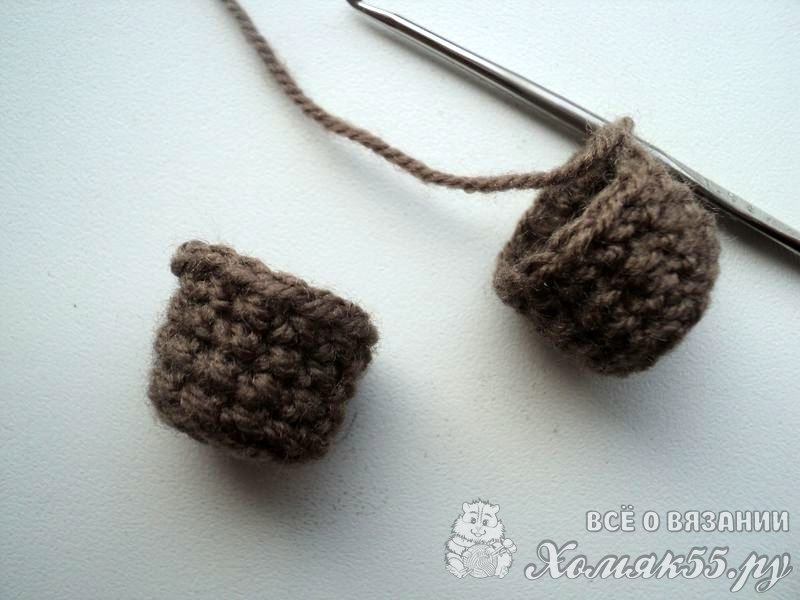 Делаем две ВП и во вторую выполняем ряд из шести СБН. В следующем вяжем СБН, два СБН в петлю. Так у нас ряд получится из девяти СБН. А затем просто вяжем по кругу одиннадцать рядов.