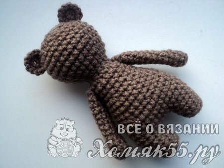 Теперь пришиваем мишке лапки и ушки.