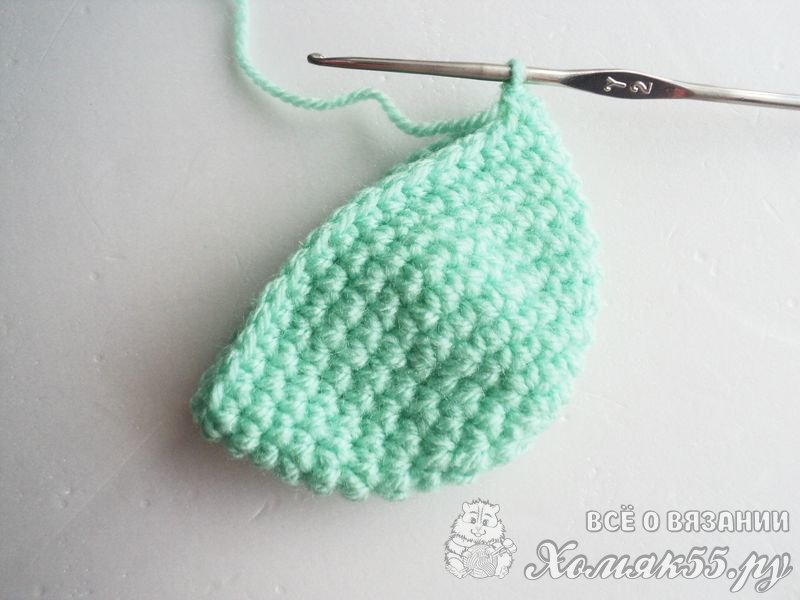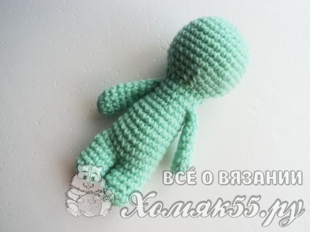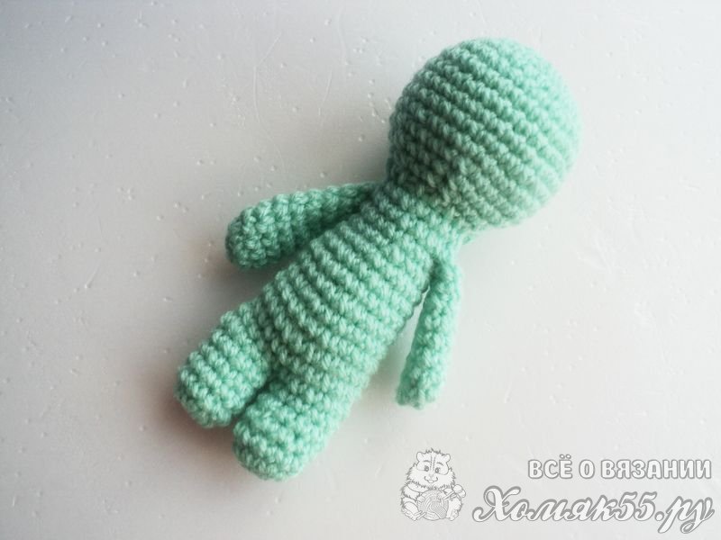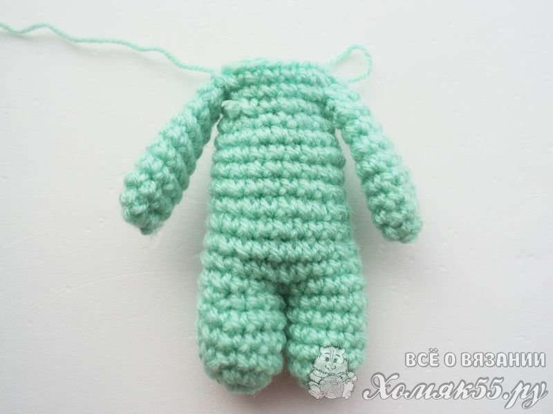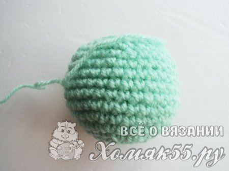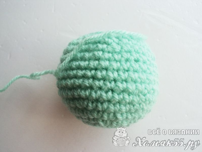 Далее провязываем еще 3 ряда по 24 СБН. Наполняем тельце синтепоном и на время откладываем деталь.