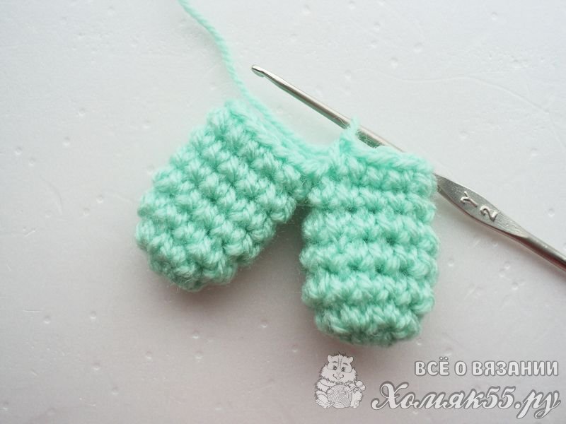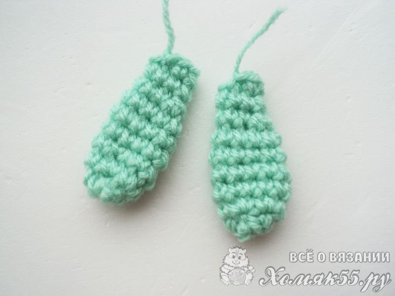 Прикладываем детали вместе и провязываем ряд, соединяя их. В итоге у нас будет 24 петли.