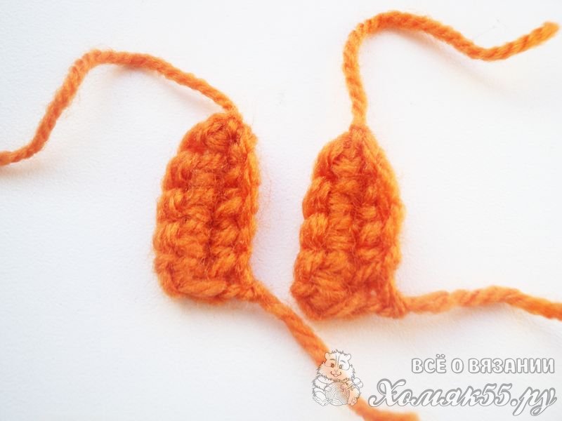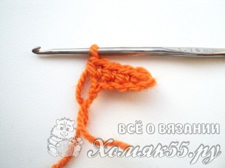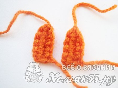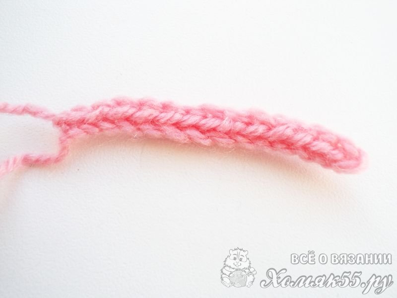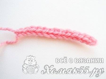 Теперь будем вязать ушки. Набираем цепочку из 4 ВП. Далее вяжем 3 СБН.