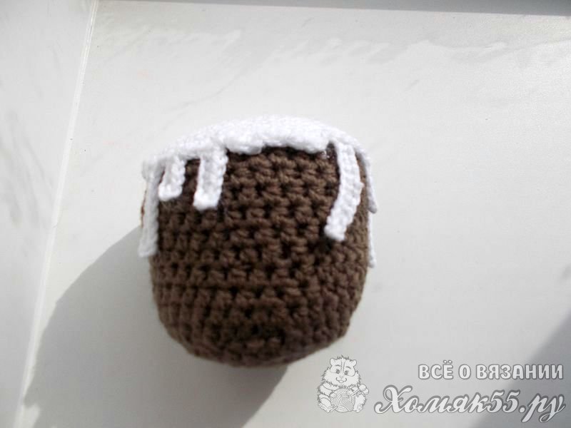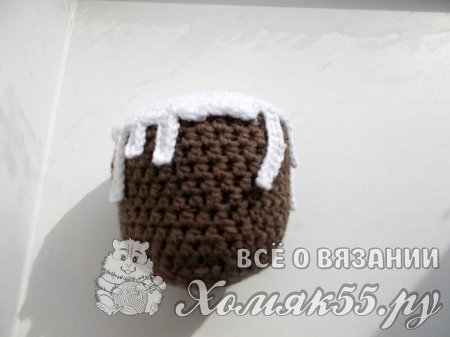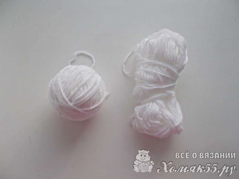 Приступаем к вязанию самой сладенькой и всеми любимой части кулича - помадки. Возьмите пряжу белого цвета. Точно также, как и коричневую, размотайте ее на два клубочка.