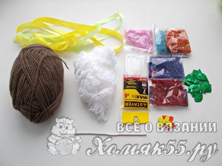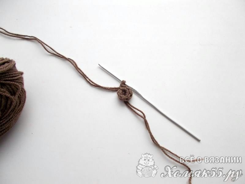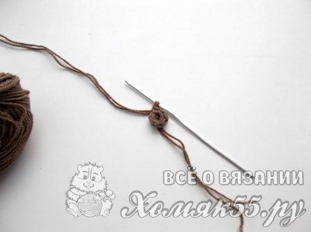 - Пряжа (100% акрил) темно-коричневого цвета – 50 грамм (моток 150м/50грамм)