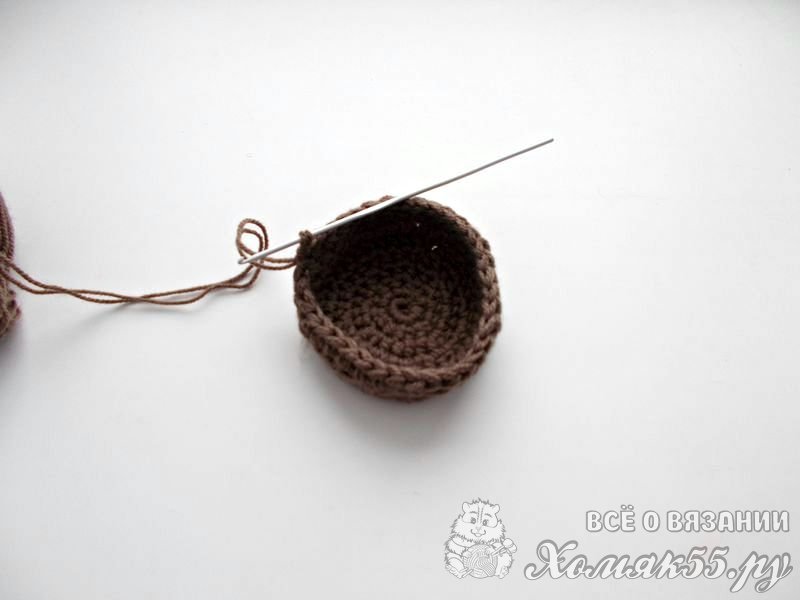 Итак, теперь нам необходимо поднять вязание вверх. При провязывании петель вводите крючок под нижнюю петлю крайнего ряда донышка.