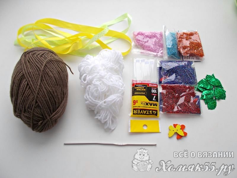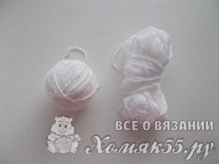 - Пряжа (100% акрил) белого цвета – 20 грамм (моток 150м/50грамм)