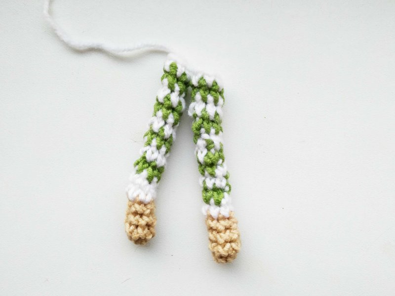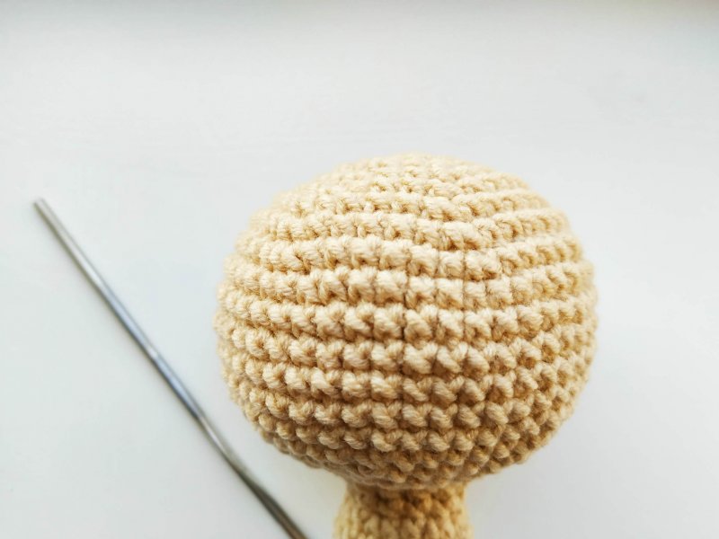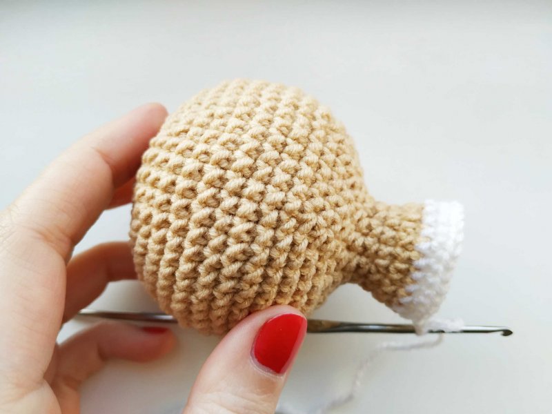 Меняем нить на белую и продолжаем прибавлять, чтобы увеличить деталь для тела.