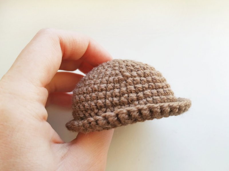 Осталось связать только шляпку. Начинаем вязать коричневой нитью. Снова 2 петли и в первую вяжем 6 стбн.