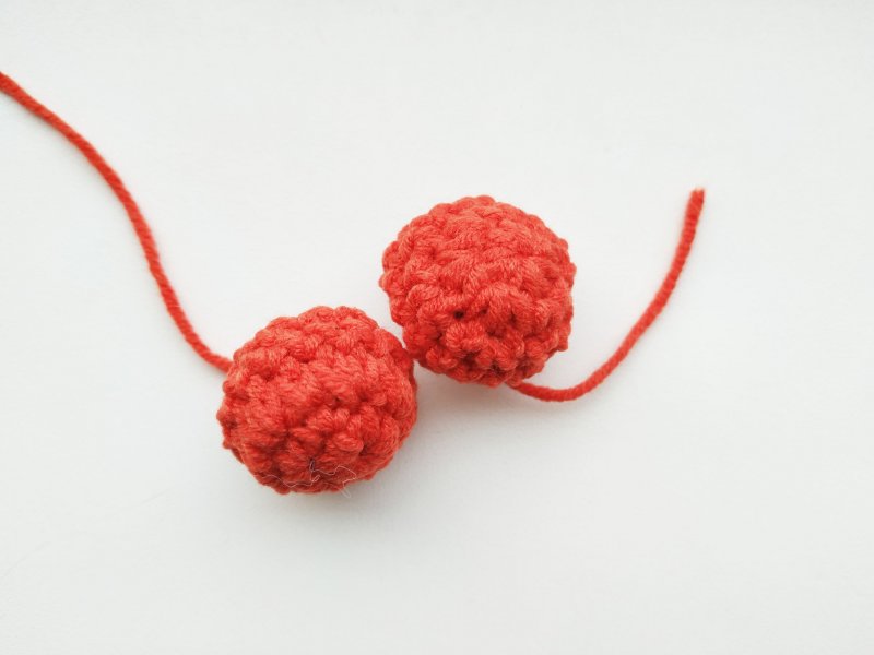 Получившуюся деталь отложим в сторону. Сейчас снова потребуется красная нить, так как будем вязать грудь для куклы.
