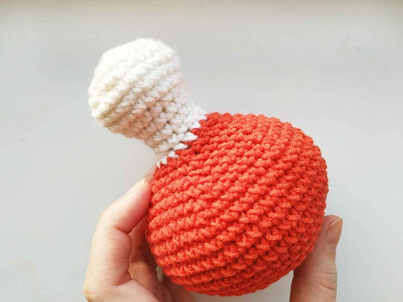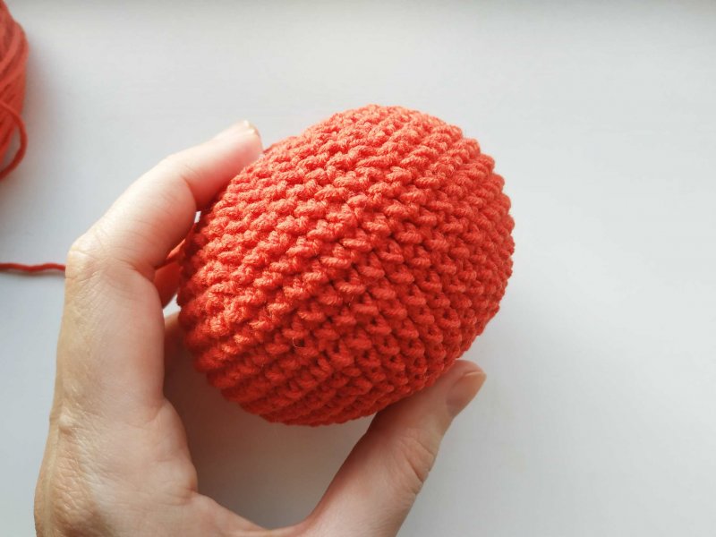 16 ряд: 2стбн, убавка (18 петель). Наполним деталь синтепоном. Наполняем плотно, так как потом будем неудобно это делать.