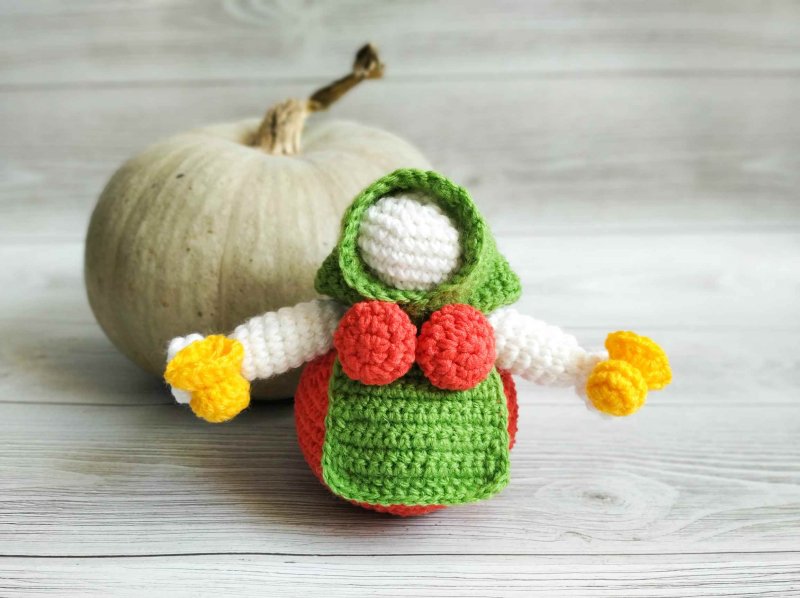 Нижняя часть куклы будет представлять собой шарик, поэтому будем вязать методом амигуруми. То есть вязать будем по кругу с прибавлениями в каждом ряда, а затем с убавлениями.