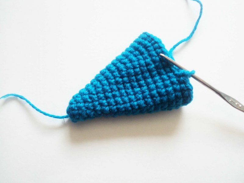 А затем присоединяем еще 1 в таком же положении. То есть, нужно пришить 3 конуса, присоединяя каждый к 2 конусам из 6 сшитых кругом.
