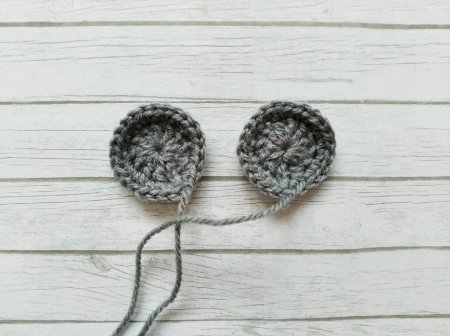Вяжем ушки (задняя часть). Их вяжем пряжей того же цвета, что и основа.