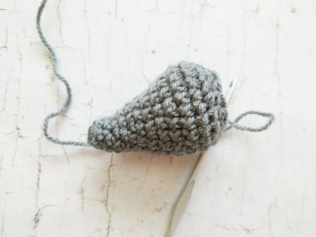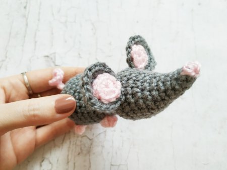Пришиваем розовую часть ушек к серым и вышиваем носик розовой ниткой.