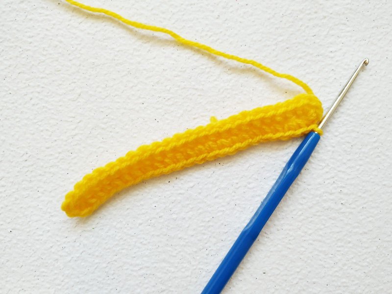 Теперь присоединим нить к хвосту и свяжем 4 петли. Далее выполним 2 сс2н. Затем вяжем 4 петли и выполняем 1 сс.