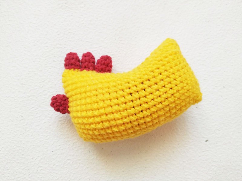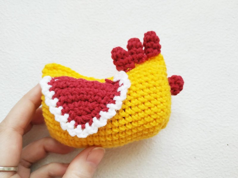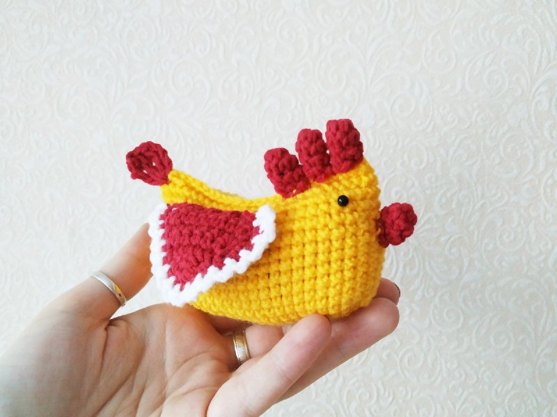 Осталось прикрепить бусинки на место глазок. Вот такая милая и забавная курочка крючком получилась. Она может стать отличным декором для праздника или сувениром для родных и близких.