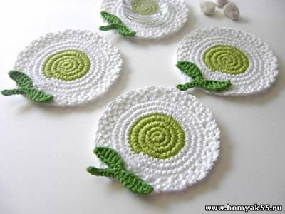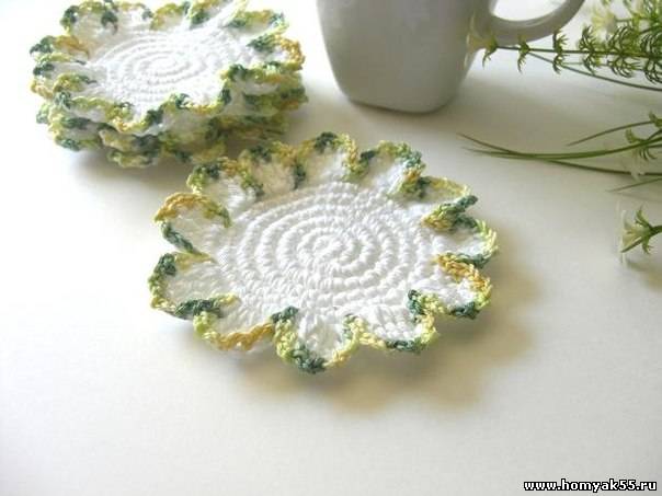 Все подставочки вяжутся очень просто, но в тоже время выглядят очень красиво! Любуемся и вдохновляемся))) Думаю даже новичкам не составит огромного труда связать подобные. Если же всё таки возникнут вопросы, спрашивайте, чем смогу помогу)))
