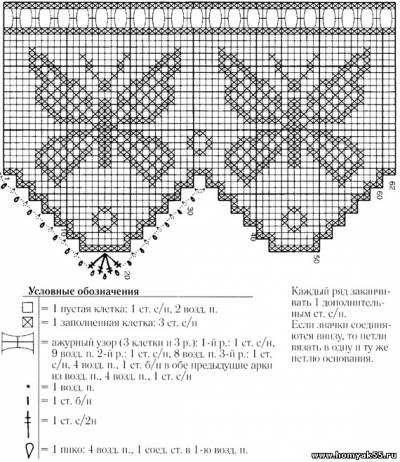 Любую штору для кухни Вы можете украсить вязаной каймой. Схема вязания