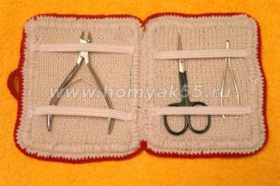 С внутренней стороны пришила полоски резинок, чтобы они держали маникюрные принадлежности.