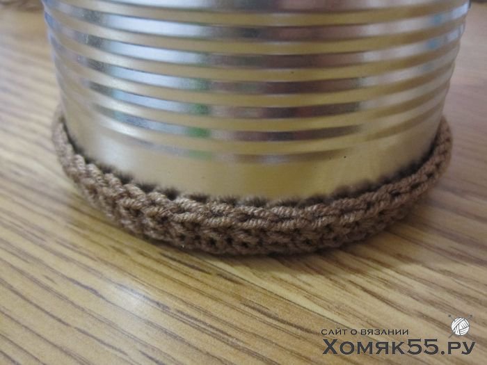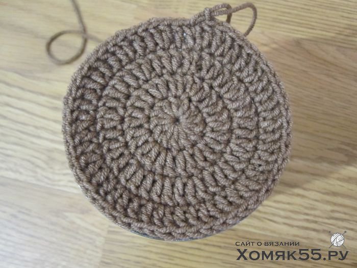 Когда связано дно баночки, начинаем обвязывать саму баночку. Дальнейшее вязание будет состоять только из столбиков без накида.