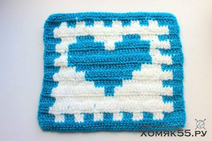 Вот такой получается одна сторона прихватки «Сердечко»: