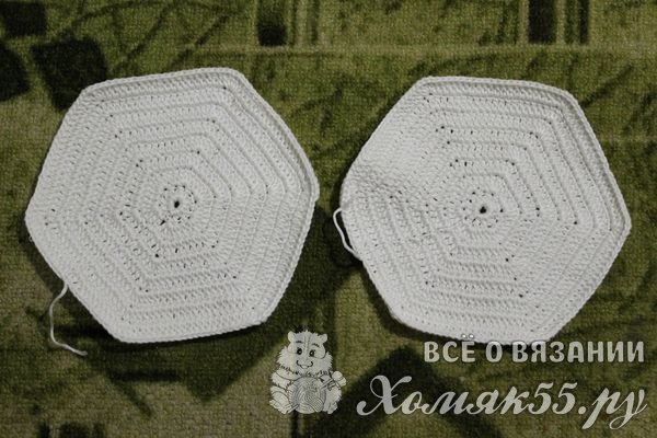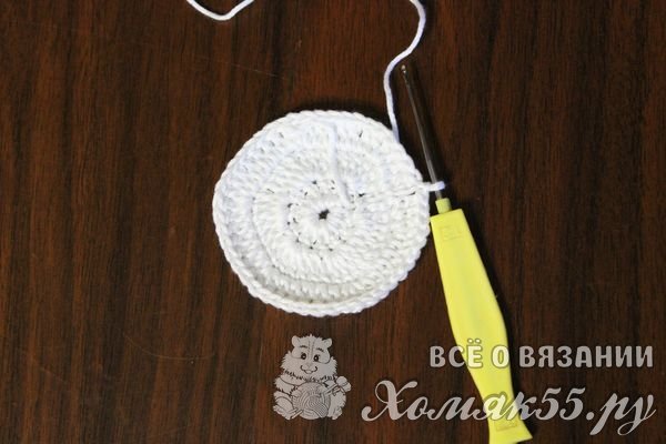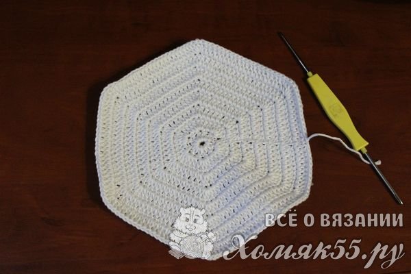 Ряды необходимо повторять до тех пор, пока деталь не будет желаемых размеров. На этапе выполнения трех рядов изделие все еще похоже на круг, будущие углы еще не выделяются: