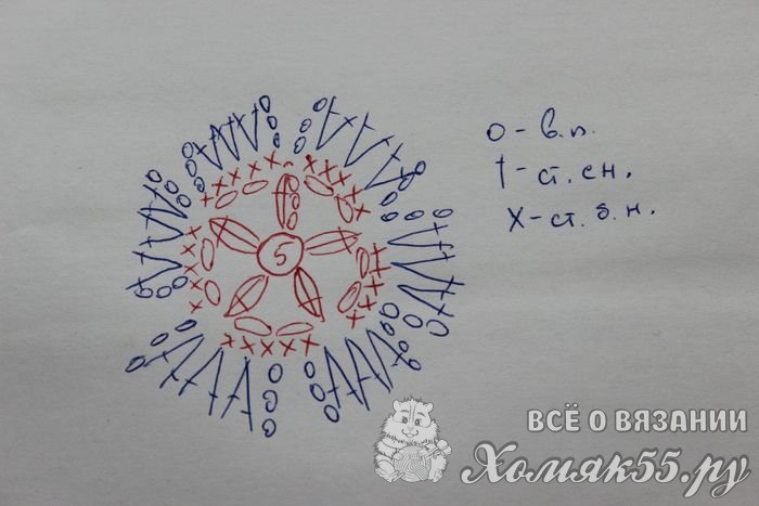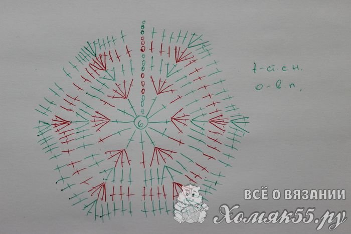После этого можно браться за вязание цветка. Сделать это нужно по следующей схеме: