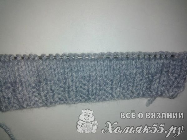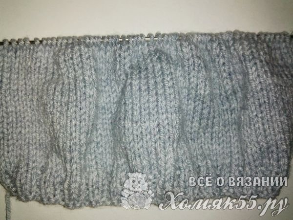 Набираем на спицы шестьдесят петель. И вяжем резинкой два на два четыре ряда. То есть две петли изнанки и две петли лицевых.