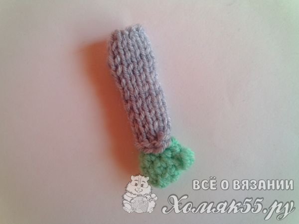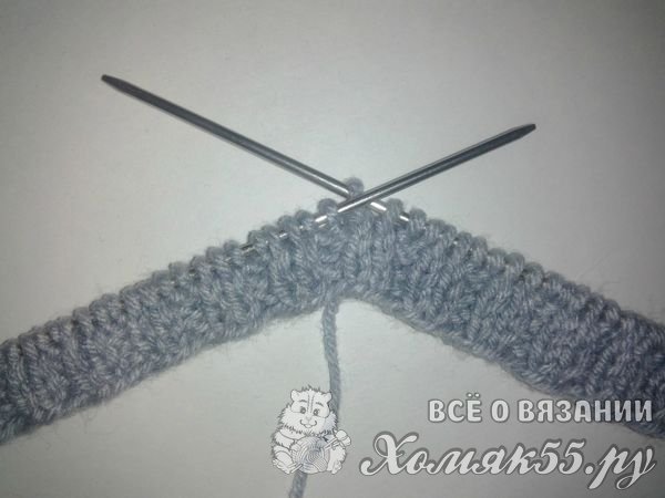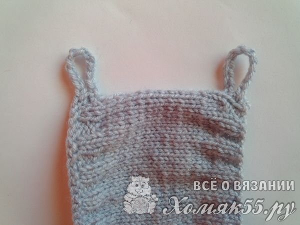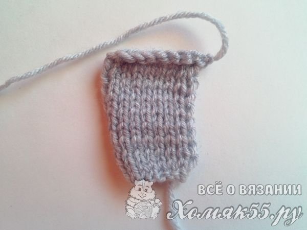Теперь набираем на спицы восемь петелек. И тоже вяжем лицевой гладью. Только уже семнадцать рядочков. Это основа для рукава.