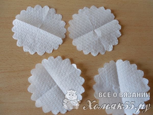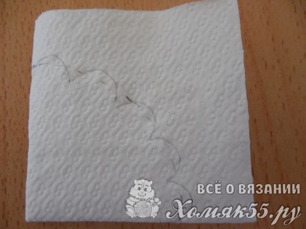 1. Первый вариант. Возьмите обычную салфетку, сложите вчетверо, в углу нарисуйте сектор круга с радиусом 4,5см.