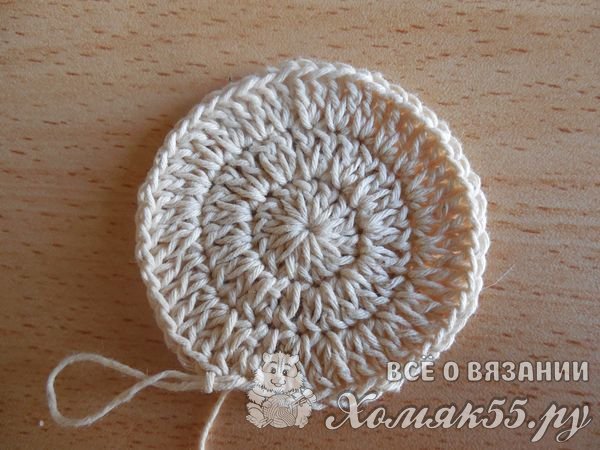 Выполнение этого ароматизатора для дома очень простое. Начинайте с вязания «корзинки». Для этого сделайте петлю и провяжите 13столбиков с накидом, замкнув их в кольцо. Во втором ряду вяжите в каждую петлю основания два столбика с накидом. Третий ряд выполните аналогично.