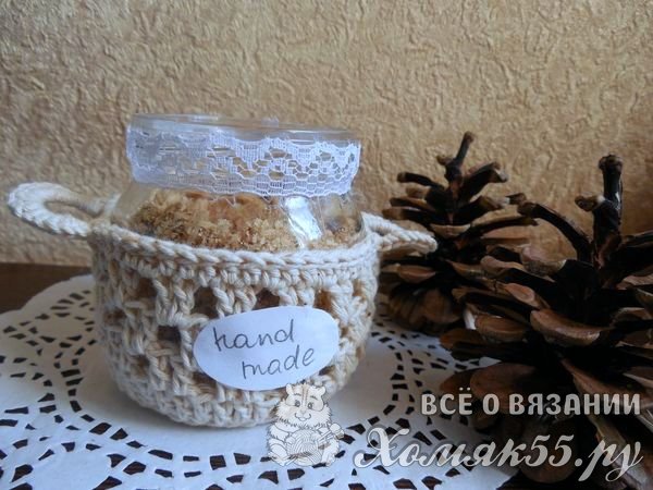 А можно ничем горшочек не закрывать, а просто украсить горлышко кружевом, но тогда придется следить чтобы его никто не уронил.
