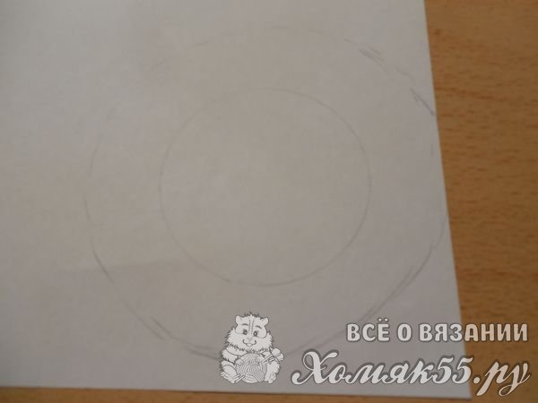 3. Третий вариант. Возьмите белую бумагу (с газетной тоже получается интересно). Нарисуйте круг диаметром 8,5см, можно просто от руки, идеальная ровность тут не нужна.
