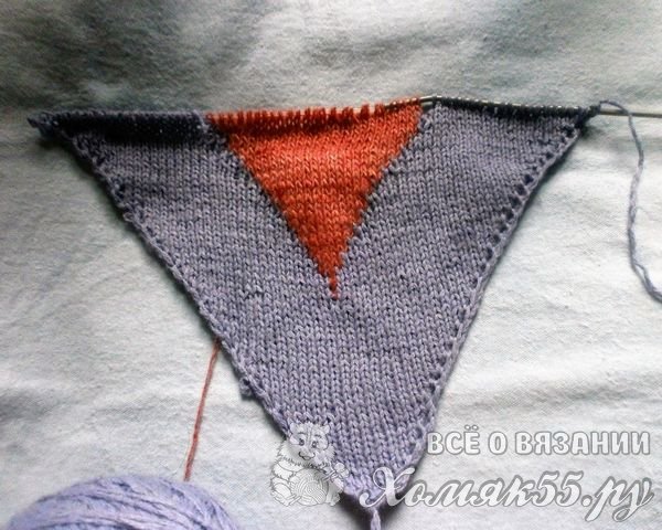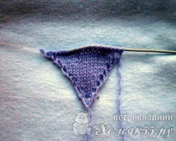 Так вяжем, пока в ряду не будет 75 петель. У нас получился треугольник.