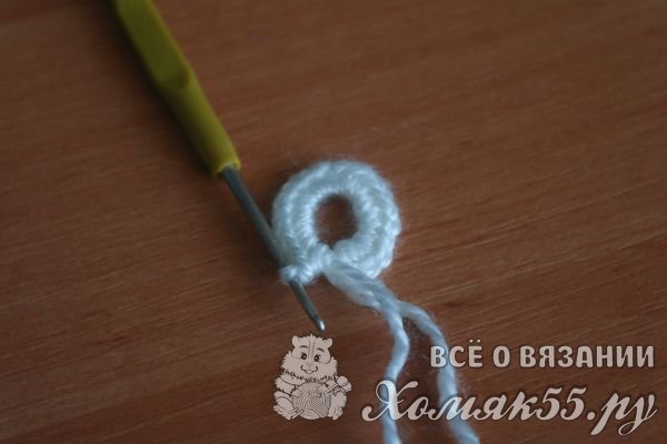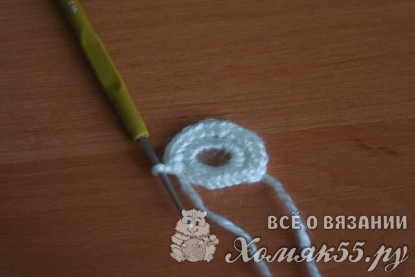 Делаем скользящую петлю и обвязываем ее 20-ю столбиками с одним накидом. Если у вас получится меньше – не беда.