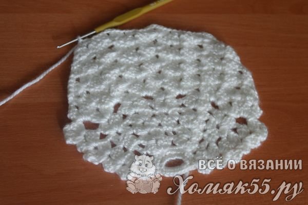 Следующие ряды вяжем аналогично предыдущему, пока полотно не будет нужного размера.